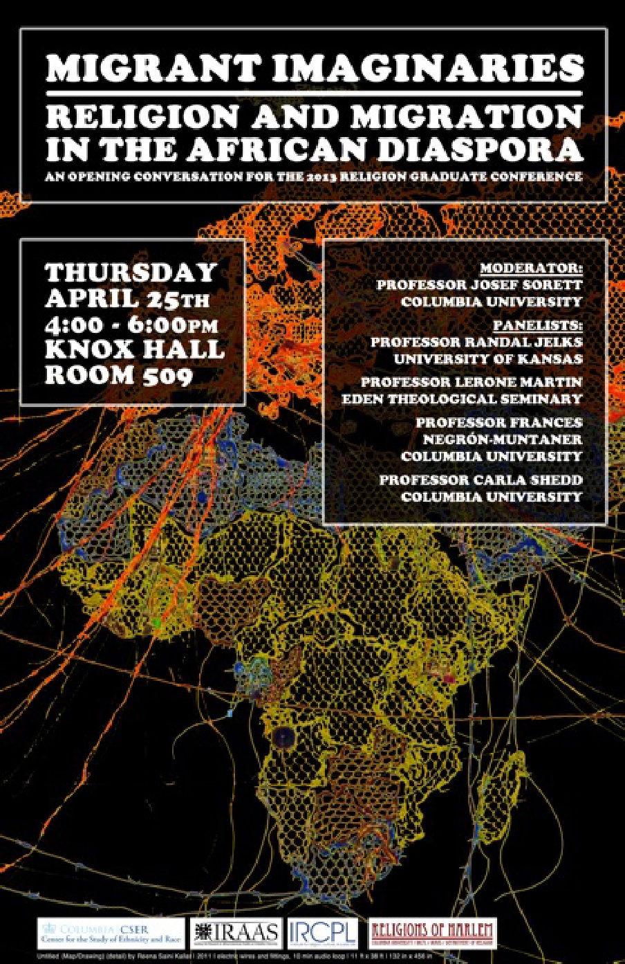 - “Migrant Imaginaries: Religion on the Move in the African Diaspora.” Co-Organizer of an opening panel for the Religion Graduate Students Association conference, hosted in partnership with the Religions of Harlem project, April 2013.